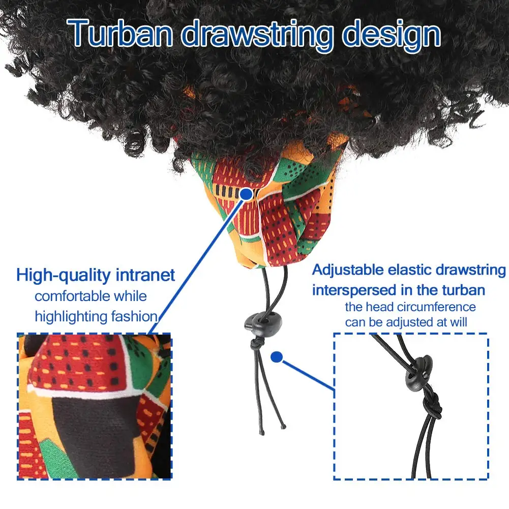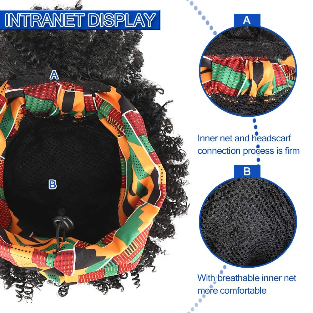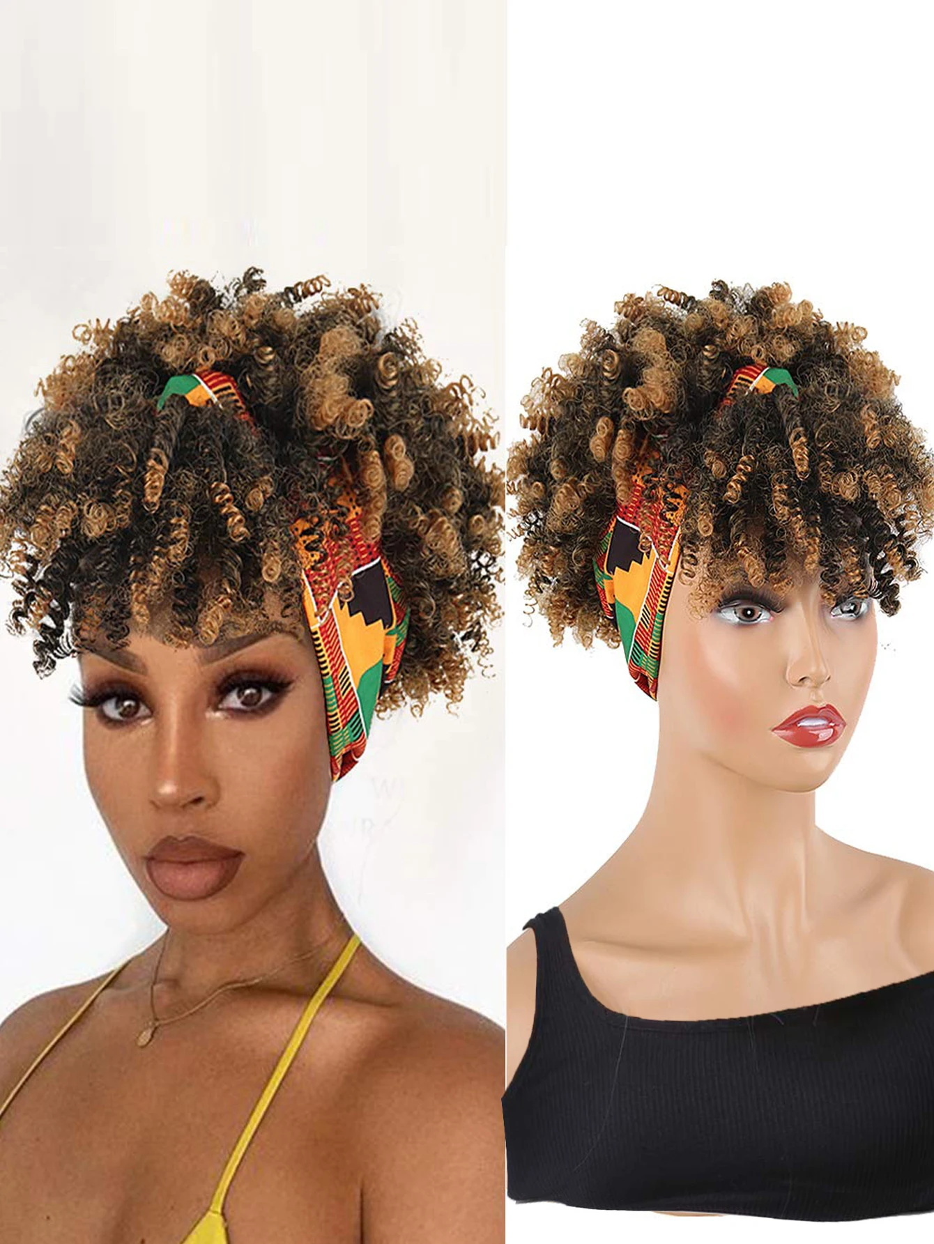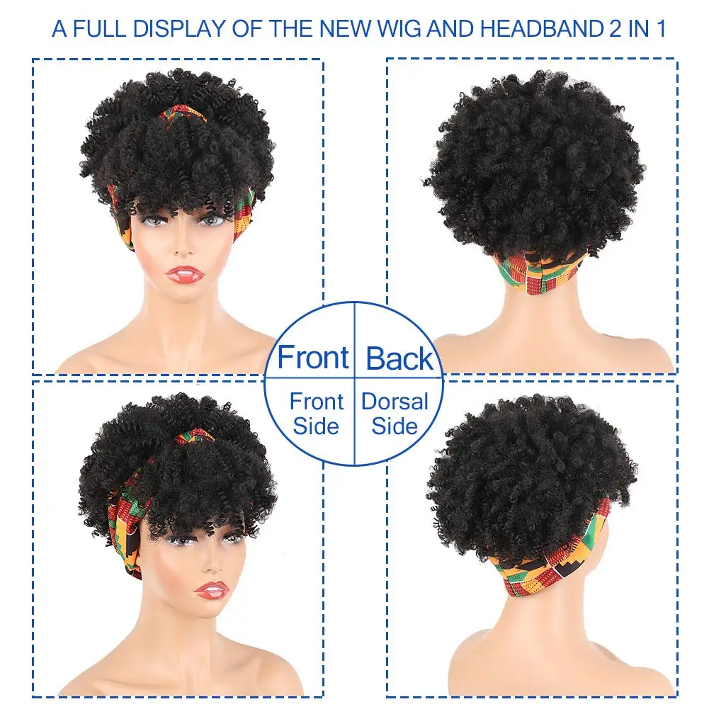 Curly Wigs for Black Women Short Afro Kinky Curly Headbands for Wigs,Curly Synthetic Black Wig with Bangs Wrap Wig with Headband